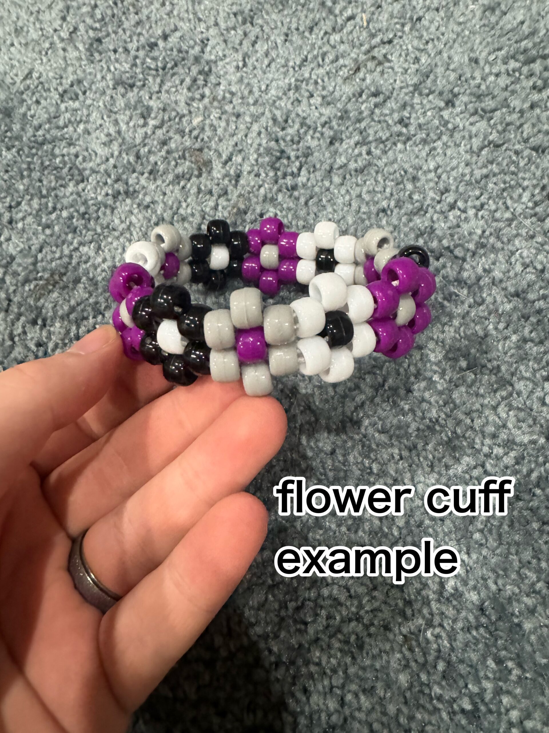 L— 8 singles, 1 double bracelet or flower cuff, 5 stars, 4-5 mini kandi pieces(mini stars, bones, strawberries, flowers etc.)
