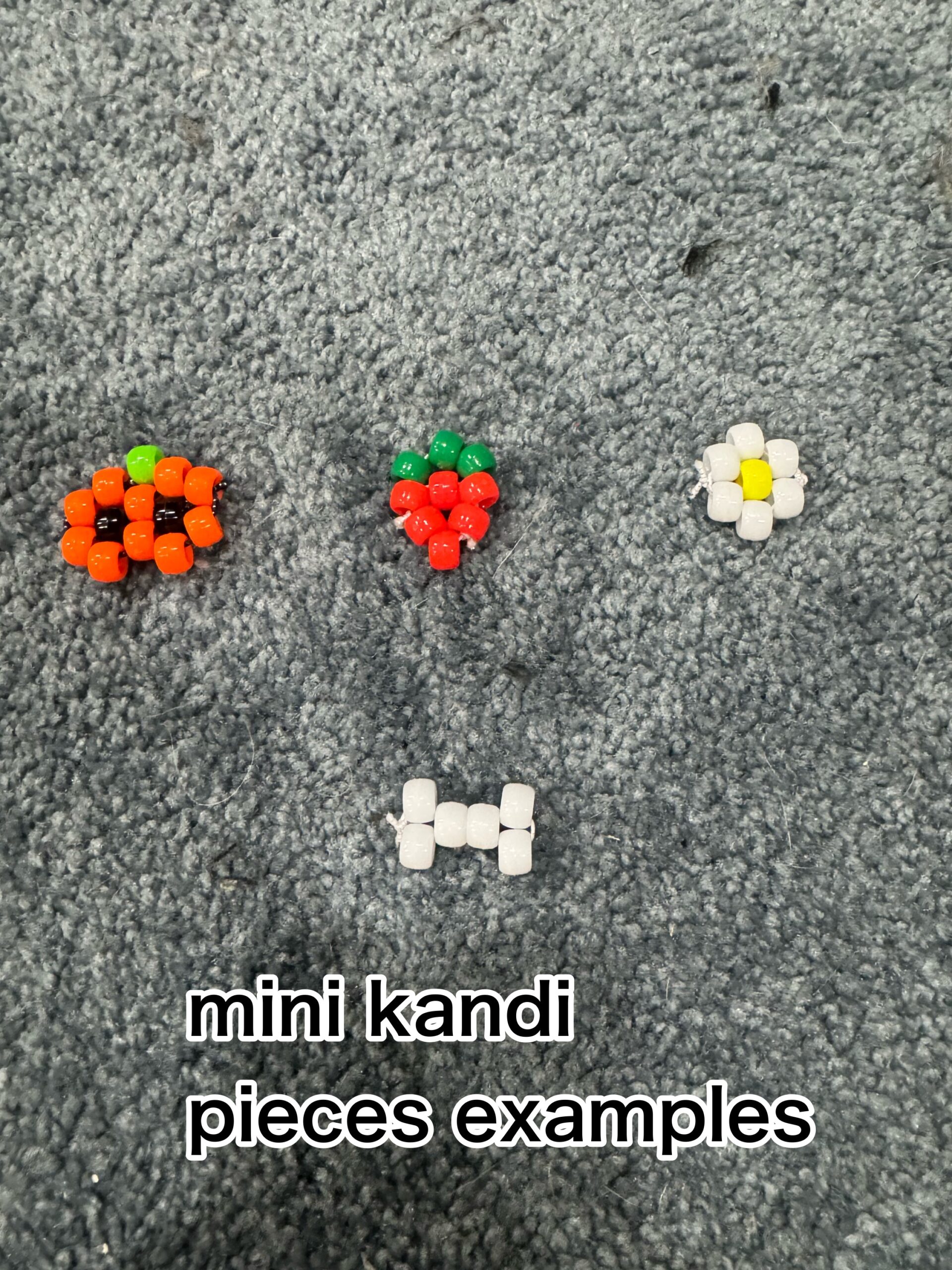 XS— 1 single, 1 star, 2-3 mini kandi pieces(mini stars, bones, strawberries, flowers etc.)